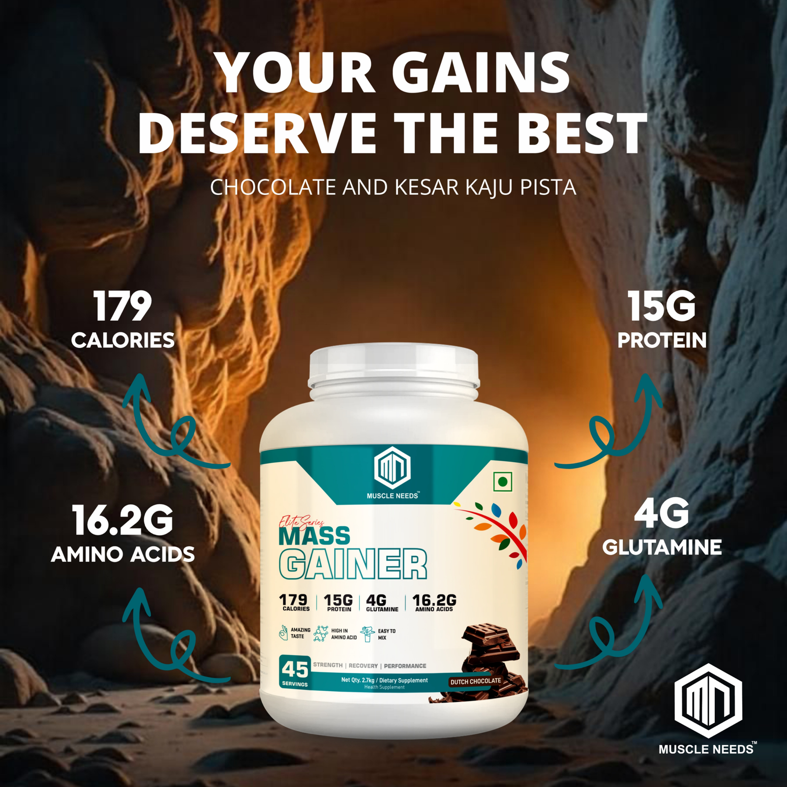 Muscle Needs Elite Series Mass Gainer – 1KG – Chocolate