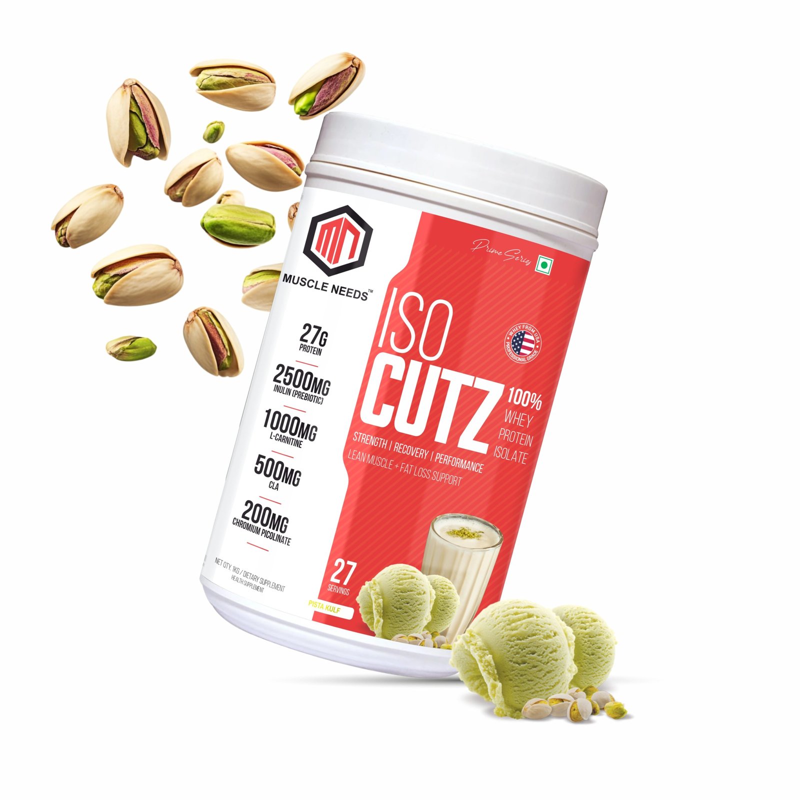 Muscle Needs ISO Cutz 100% Whey Protein Isolate – 1KG – Pista Kulfi