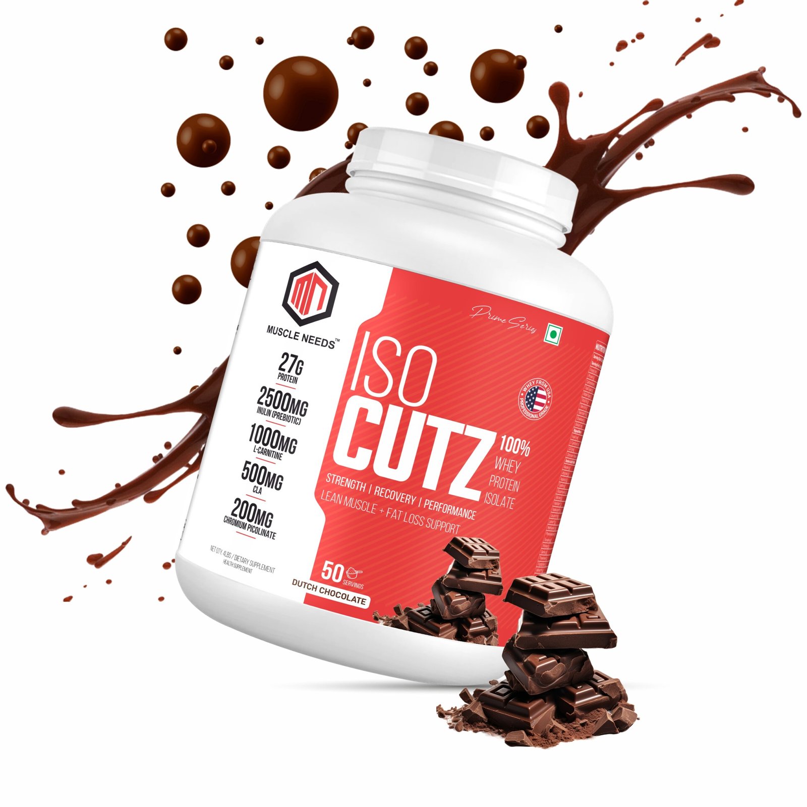 Muscle Needs ISO Cutz 100% Whey Protein Isolate – 1.8KG – Dutch Chocolate