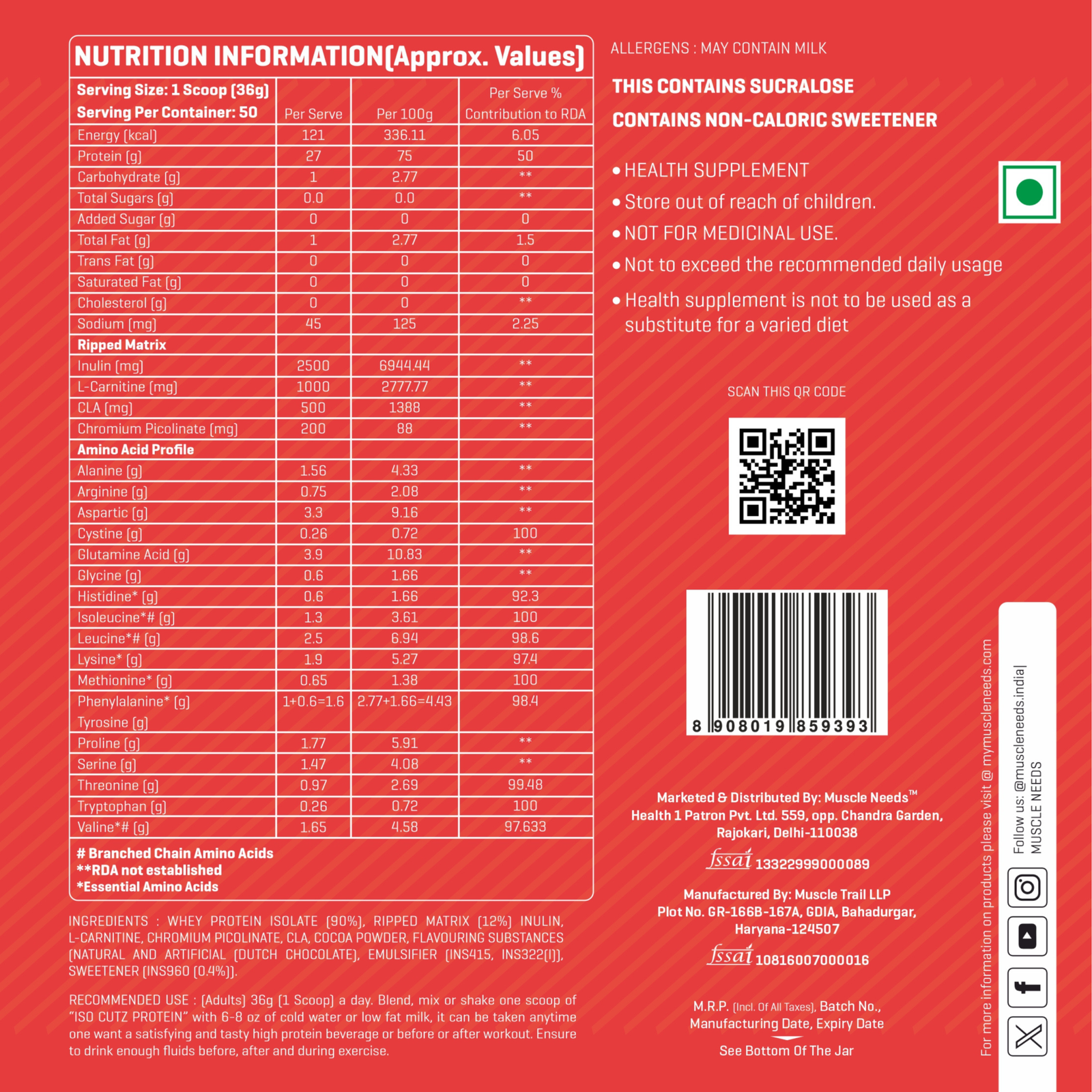 Muscle Needs ISO Cutz 100% Whey Protein Isolate – 3.6KG – Pista Kulfi