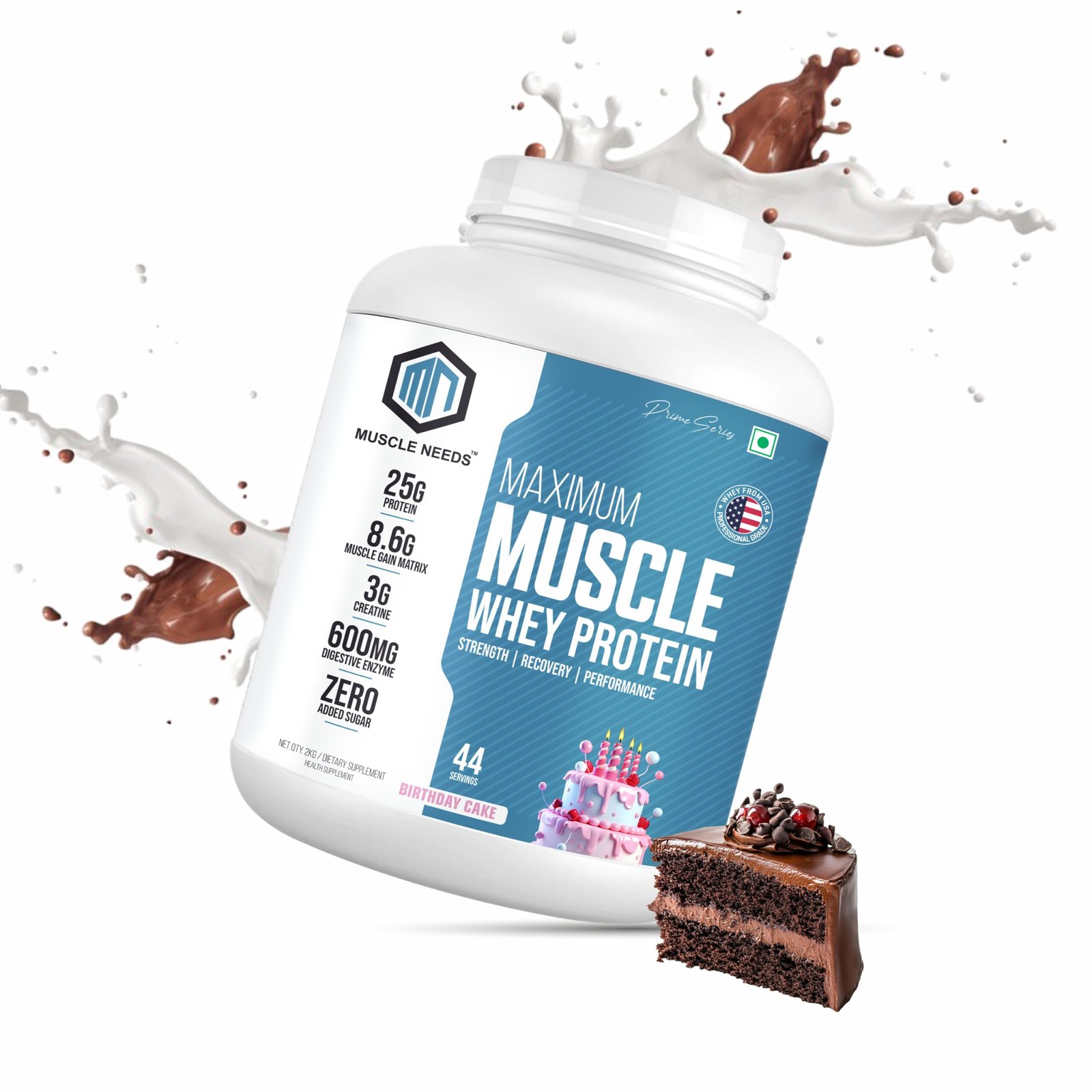 Muscle Needs Prime Series Maximum Muscle Whey Protein – 2KG – Birthday Cake